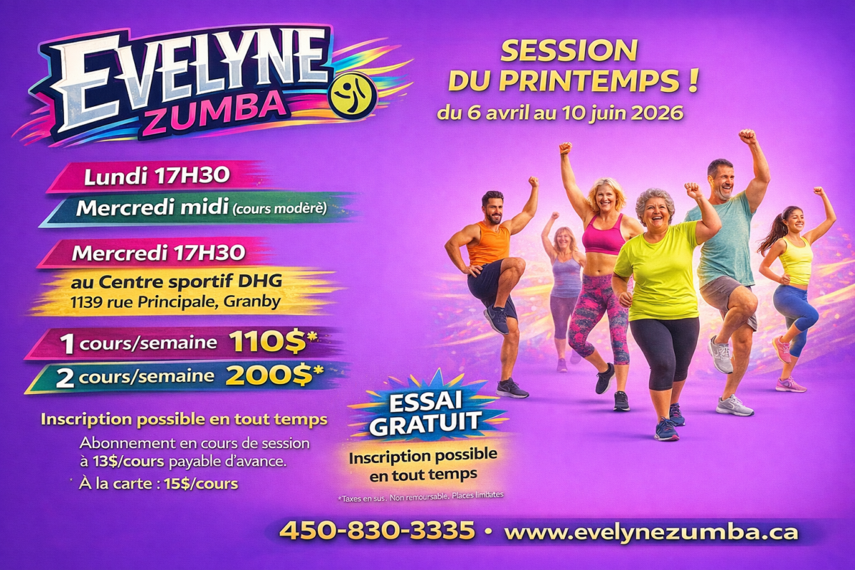 Avec la Zumba, tu danses, tu brûles des calories et tu te libères du stress, le tout dans une ambiance électrisante. Viens vivre l’expérience Zumba avec Evelyne : un mélange parfait d’énergie, de musique et de bonne humeur.